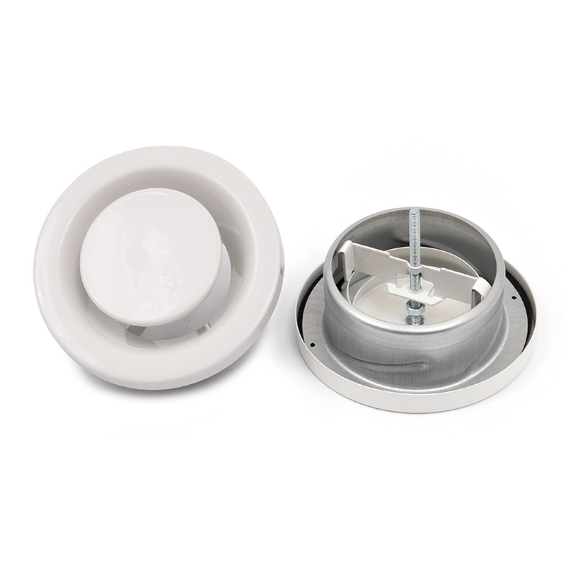 Metal exhaust air valves are a popular alternative to ceiling diffusers, primarily used for ventilation. Airflow through the valve can be adjusted by rotating the disc clockwise or counterclockwise, which alters the free area between the disc and the frame.