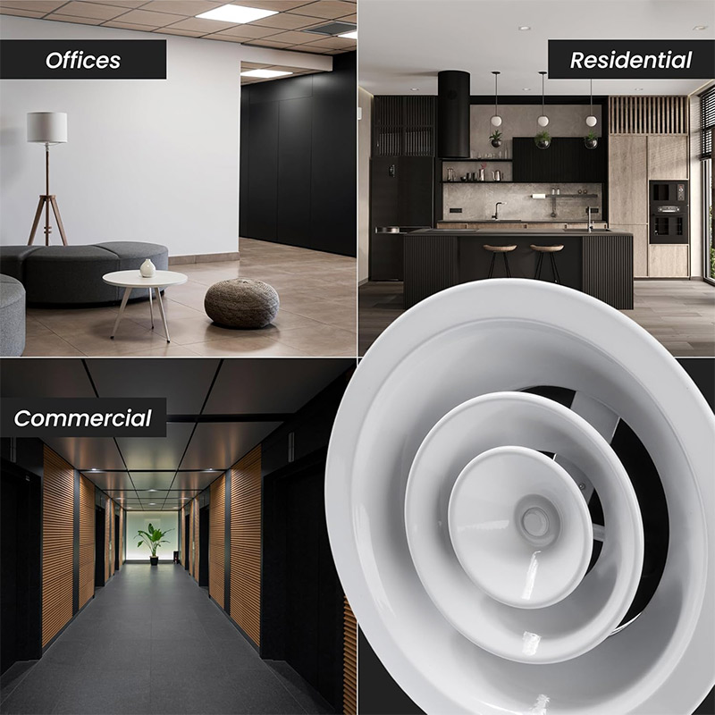 The round ceiling diffuser is Suitable for supply applications for cooling, heating and isothermal conditions. Suitable for modular ceiling systems. Capable of handling high airflow rates at moderately low pressure drops and noise.