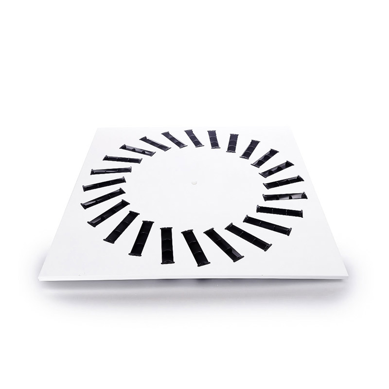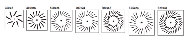 The swirl ceiling diffusers are an attractive and aerodynamically efficient alternative to conventional circular ceiling air terminals. The diffusers are designed to produce a horizontal, radial air pattern with a turbulent, high induction jet characteristic and are ideally suited for applications with high heating or cooling differentials.