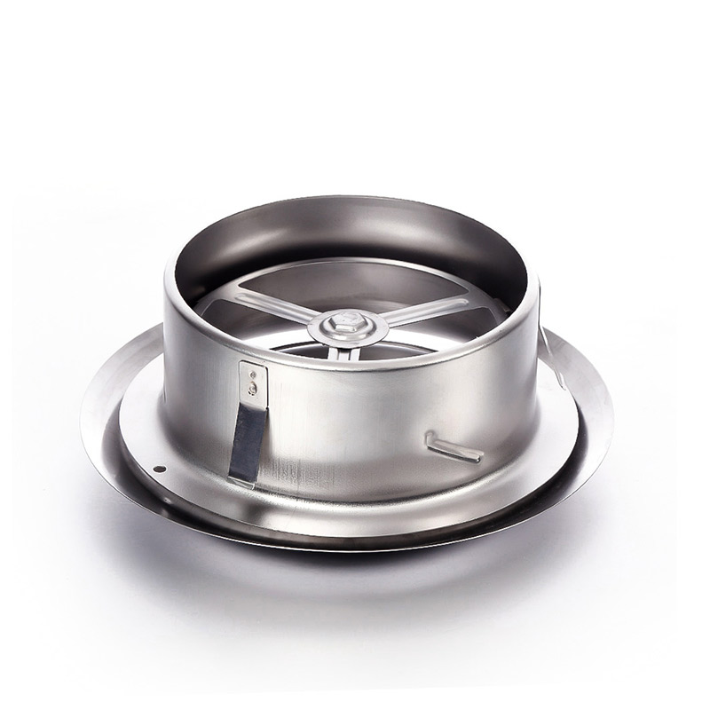 The Stainless Steel Supply Air Disc Valve (VS) is designed for both air exhaust and supply applications. Constructed from durable brushed stainless steel, the valve features an adjustable disc, a foam rubber sealing ring, and a mounting frame for secure installation.