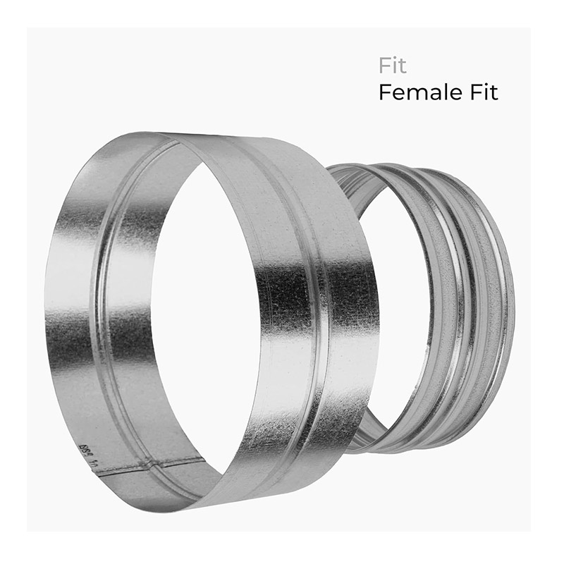 Galvanized Steel Duct Connector (Female Socket), used to connect two male-ended duct sections.