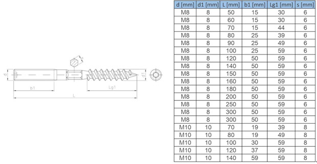 Installation Method: Requires pre-drilling a pilot hole in the wood, followed by screwing the wood-threaded end into the wood using a nut or specialized tool.