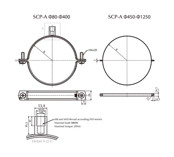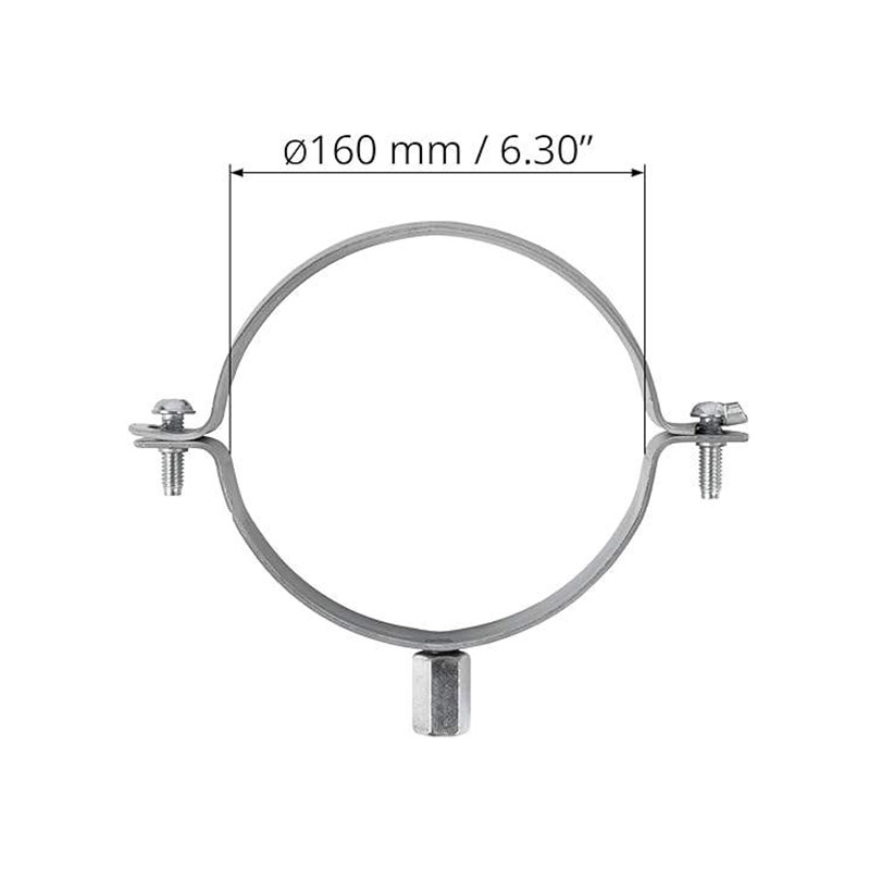 Diameters 80–400mm: M6 screws on both sides, single-point suspension with M8/M10 nut on top.