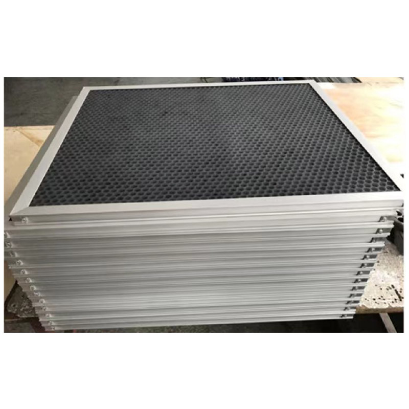 Activated carbon granules are porous materials with strong adsorption capabilities. Their adsorption function is achieved through a combination of physical and chemical adsorption forces, and they appear black in color. The particle size of activated carbon directly affects its adsorption capacity. Generally, the smaller the particle size, the larger the filtration surface area. Activated carbon with different iodine values can be selected based on application requirements. Customized sizes are supported, with the conventional specification being L595 × W595 × H46 (mm). The outer frame material is available in two types: galvanized steel frame and aluminum alloy frame.