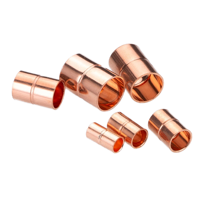 These copper pipe fittings are crafted from copper, offering excellent thermal conductivity, corrosion resistance, and ease of welding. They deliver stable performance, a long service life, and a smooth, burr‑free surface. Each straight copper coupling is equipped with reel stops and sweat-wicking ends to facilitate quick, secure connections.